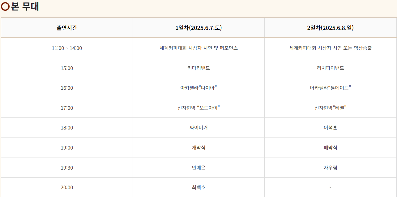 🎤 야외 공연 라인업 (음악과 함께하는 커피)