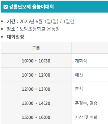 - 장소: 단오장 및 지정 행사장